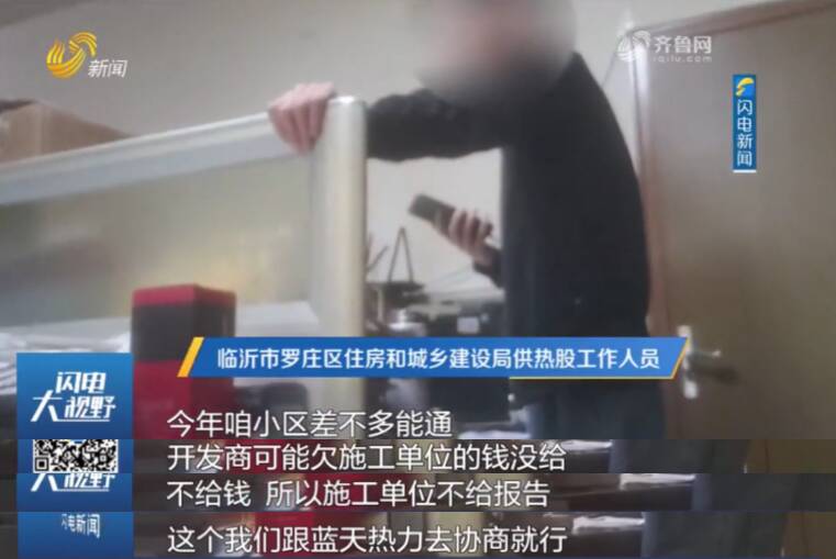 “今年咱小区差不多能通”,住房和城乡建设局供热股工作人员解释称,有些换热设施开发商需要整改,但开发商可能欠施工单位的钱,所以施工单位就不给验收报告。该工作人员表示会去跟蓝天热力协调:“我不敢说100%,我只能说问题不大。”