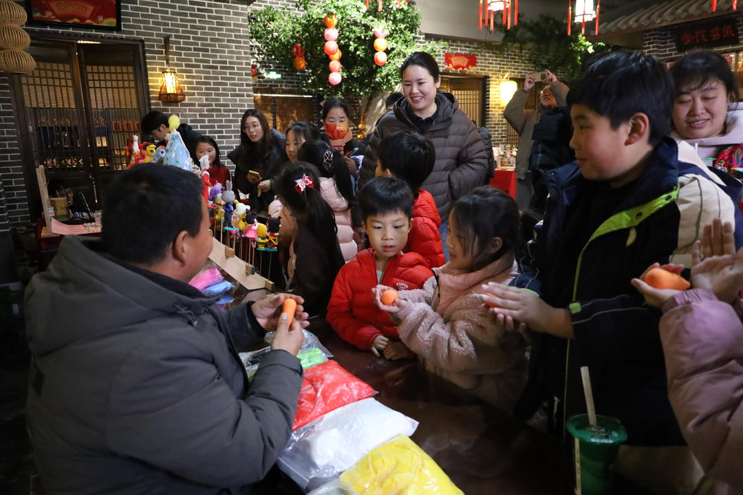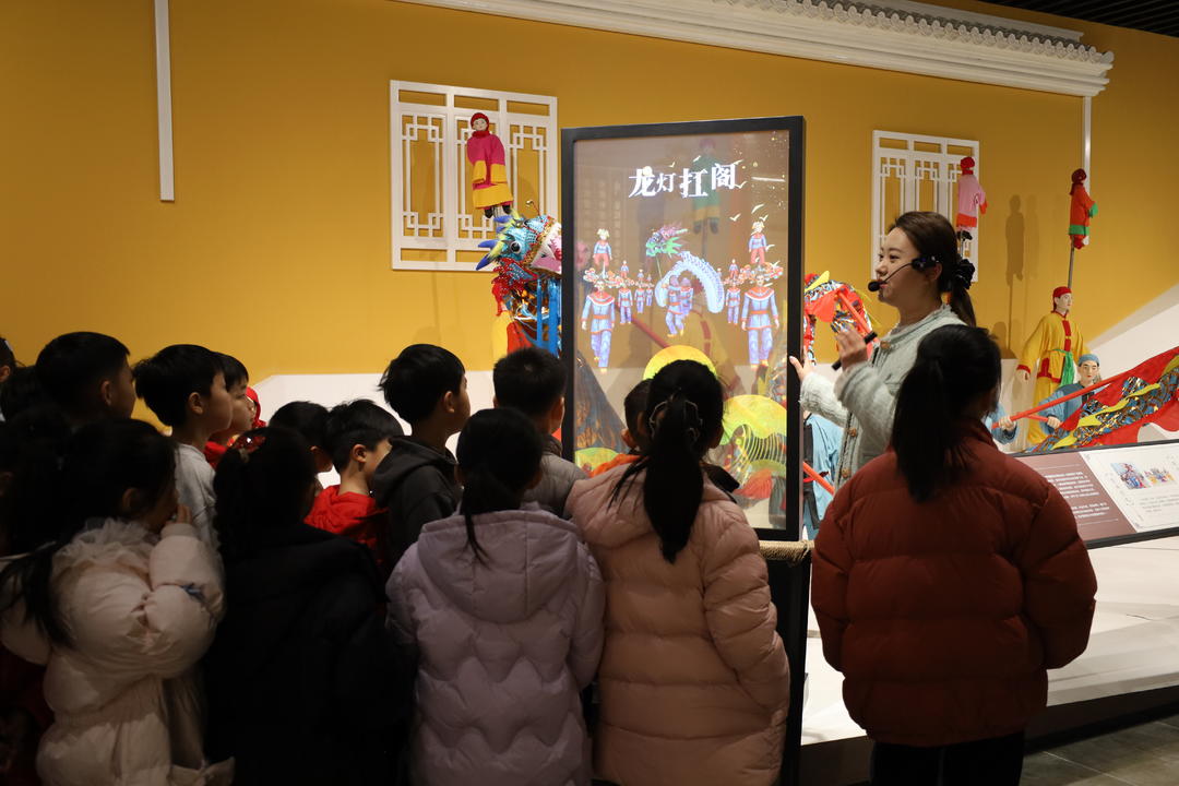 展馆中,一支来自杏园小学的研学队伍格外引人注目,孩子们在工作人员的带领下,有序穿梭于各个展区,了解柳编、剪纸、糖画、龙灯扛阁等传统非遗技艺的历史渊源和文化内涵;文创市集互动体验区内,非遗传承人主动为孩子们讲解非遗技巧,引导孩子们动手尝试,让孩子们在实践中感受非遗创作的乐趣,触摸传统文化的温度。