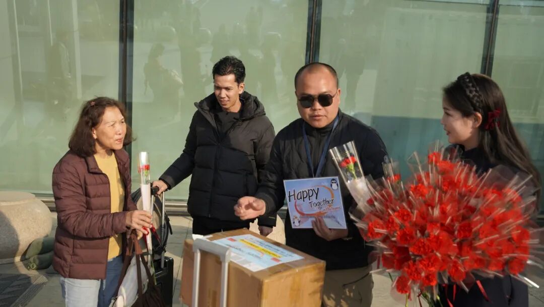 为了迎接远道而来的贵客,临沂市文化和旅游局精心筹备了一场极具中国年味和地方特色的欢迎仪式,为每一位游客献上芬芳四溢的鲜花,致以新春最美好的祝福。更让泰国朋友们惊喜的是,他们还收到了一个寓意吉祥的小红包。与众不同的是,里面装的并非是压岁钱,而是临沂家喻户晓的传统名点——高粱饴糖果。这份别出心裁的新春礼物,既展现了中国春节发红包的传统习俗,又巧妙融入了“临沂味道”。收到这份“甜蜜的祝福”,游客们纷纷面露惊喜,对这一充满心意的当地特产赞不绝口。