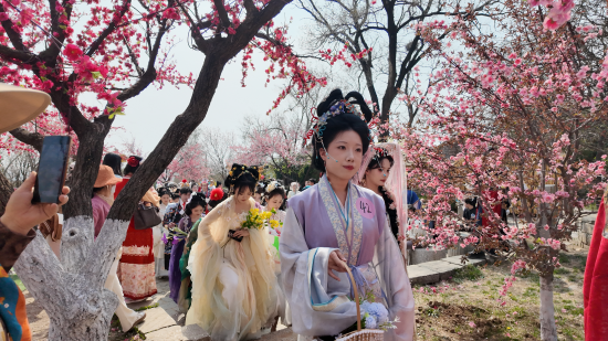 从清明节到五一假期,景区周周精彩不断:花神祭祀祈福大典庄重肃穆,男子冠礼与女子及笄礼让青少年在仪式中感受成长的意义,裙幄宴则还原了古人春宴雅集的闲适场景——游客可着汉服入席,与花神围坐对饮,在行酒令、飞花令、投壶等传统游戏中,体验一把古代文人的风雅生活。